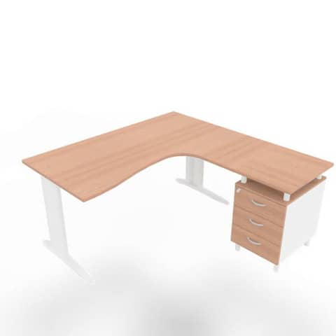 Scrivania con cassettiera a destra piano noce canaletto 160x165xH.75 cm gamba a L acciaio bianco Practika P1 ECSMT17D-NO-I