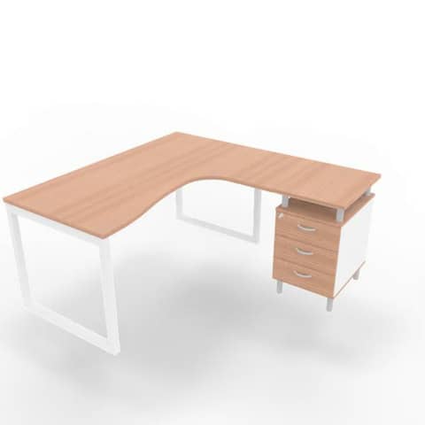 Scrivania operativa P2 con penisola a destra, con gamba ad anello e cassettiera, semplice ed essenziale, che acquista valore nella configurazione contrapposta. I contenitori complanari creano soluzioni di continuit? con i piani di lavoro, ampliando l?operativit? e la funzionalit? di ogni singola postazione. Piano scrivania realizzato in conglomerato ligneo spessore 25 mm, rivestito su entrambi i lati con pannello melaminico antiriflesso, antigraffio e lavabile. Bordatura sui 4 lati in ABS antiurto, in tinta, spessore 2 mm. Densit? del pannello: 670/730 kg/m3. Gambe e travi in tubo e lamiera di acciaio verniciato a polveri epossidiche. Gamba metallica ad anello in tubo d’acciaio 40×40, spessore 1,5 mm, con traverso superiore in tubo d’acciaio sezione 60×35, spessore 1,5 mm. Tappi con piedini livellatori in PE, diametro 40 mm, escursione 0-12 mm. Struttura bianca. Piano noce canaletto. Dimensioni 160x165xH.75 cm.