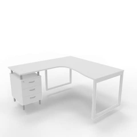Scrivania con cassettiera sinistra piano bianco 160x165xH.75 cm gamba ad anello acciaio bianco Practika P2 ECSAT17S-BA-I