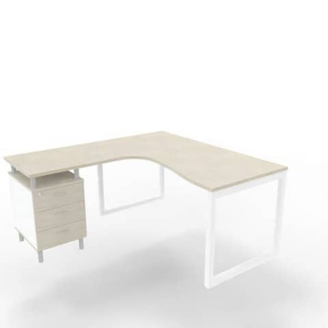 Scrivania con cassettiera sinistra piano cemento 160x165xH.75 cm gamba ad anello acciaio bianco Practika P2 ECSAT17S-CL-I