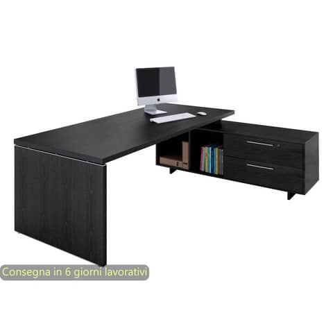 Scrivania manageriale nero venato frassino 225x170x74 cm gamba a pannello con mobile portante Flora – 902RIT/8