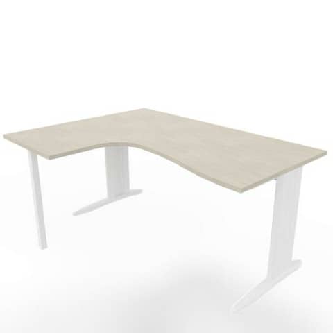 Scrivania penisola a sx piano cemento 160x120xH.75 cm gamba a L in acciaio bianco linea Practika P1 ECSMT16S-CL-I