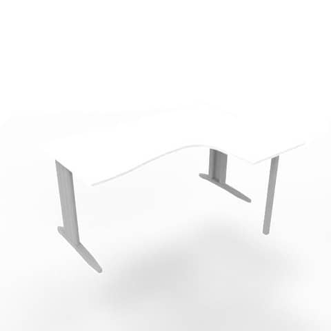 Scrivania penisola destra piano bianco 160x120xH.75 cm gamba a L in acciaio argento linea Practika P1 ECSMT16D-BA-A