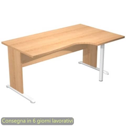 Scrivania penisola destra piano faggio 160×60/80/100xH.72 cm gamba a pannello e piede metallico Presto Compact 008L11/6