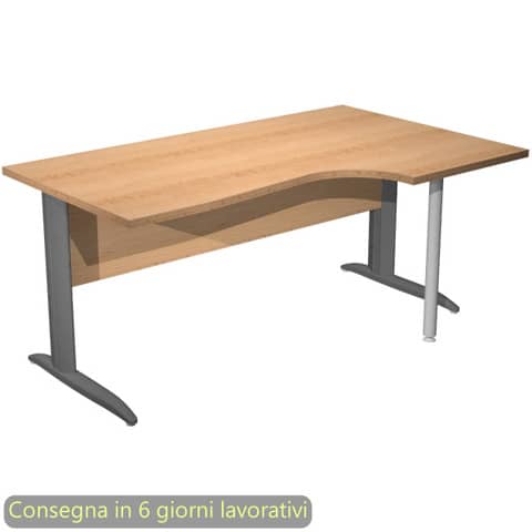 Scrivania della linea Presto, una linea operativa contemporanea progettata per un utilizzo quotidiano ed intensivo in grado di soddisfare tutte le esigenze funzionali ed estetiche. La gamma completa degli elementi permette di allestire ogni ambiente di lavoro, personalizzandolo con stile. Scrivanie con dimensioni conformi alle normative sulla sicurezza dei posti di lavoro in ufficio. Dimensioni L. 160 x P. 60/80/100 x H. 72 cm. Sagomatura laterale destra con sostegno in metallo grigio alluminio. Piani antigraffio ed antiriflesso in bilaminato nobilitato melaminico spessore 22 mm e modesty panel strutturale sp. 18 mm conformi alle norme UNI e EN classe E1. Bordi dei piani in ABS 3 mm antiurto ed assenza di spigoli vivi. Fianchi in metallo verniciato ad L. Imballi in cartone riciclato alto spessore a tutela dell?ambiente. Produzione certificata conforme alle procedure UNI EN ISO 9001. Certificazioni FSC e PEFC. Piano e controvenatura faggio. Fianchi antracite opaco.