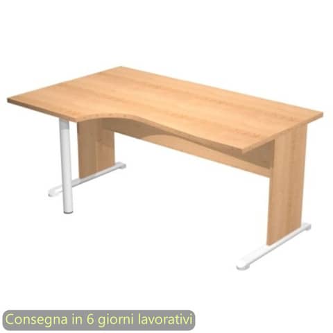 Scrivania penisola sinistra piano faggio 160×60/80/100xH.72 cm gamba a pannello e piede metallico Presto Compact 009L11/6