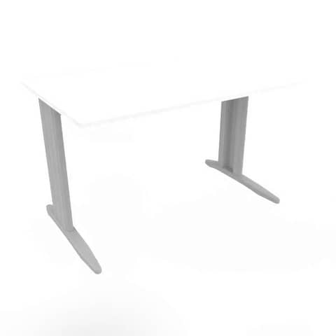 Scrivania piano bianco120x80xH.75 cm gamba a L in acciaio argento linea Practika P1 Quadrifoglio – ECSMT120-BA-A