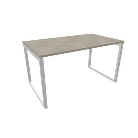 Scrivania piano cemento 140x80xH.75 cm gamba ad anello in acciaio argento linea Practika P2 Quadrifoglio – ECSAT140-CL-A