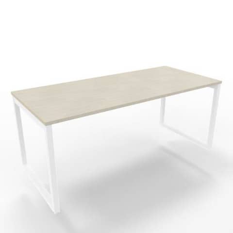 Scrivania piano grigio 180x80xH.75 cm gamba ad anello in acciaio bianco linea Practika P2 Quadrifoglio – ECSAT180-GR-I