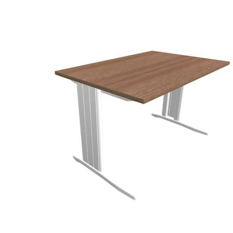 Scrivania piano noce canaletto 120x80xH.75 cm gamba a L in acciaio argento linea Practika P1 ECSMT120-NO-A