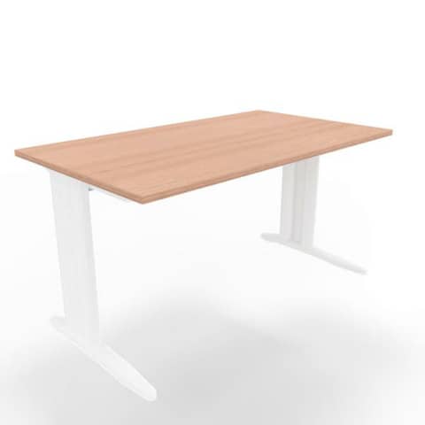 Scrivania piano noce canaletto 140x80xH.75 cm gamba a L in acciaio bianco linea Practika P1 ECSMT140-NO-I