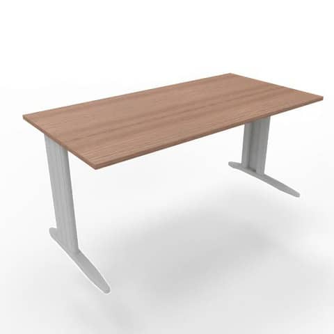 Scrivania piano noce canaletto 160x80xH.75 cm gamba a L in acciaio argento linea Practika P1 ECSMT160-NO-A