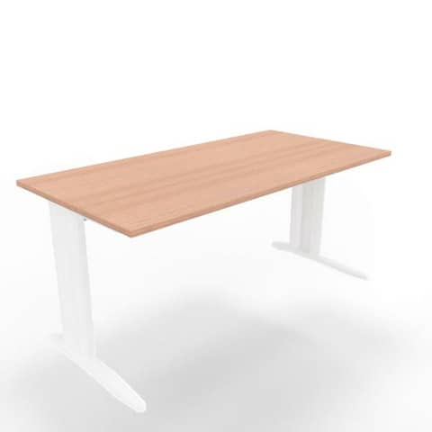 Scrivania piano noce canaletto 160x80xH.75 cm gamba a L in acciaio bianco linea Practika P1 ECSMT160-NO-I