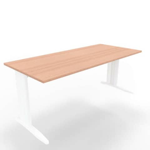 Scrivania piano noce canaletto 180x80xH.75 cm gamba a L in acciaio bianco linea Practika P1 ECSMT180-NO-I