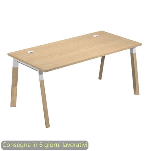 Scrivania piano rovere 120x80xH.72,5 cm gamba inclinata legno e metallo bianco Artexport piano rovere – W120-C-AM