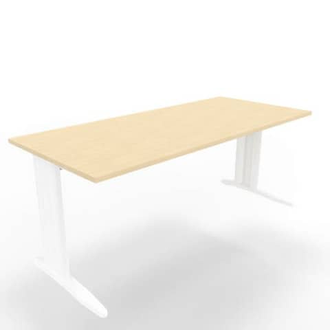 Scrivania piano rovere 180x80xH.75 cm gamba a L in acciaio bianco linea Practika P1 Quadrifoglio – ECSMT180-RK-I