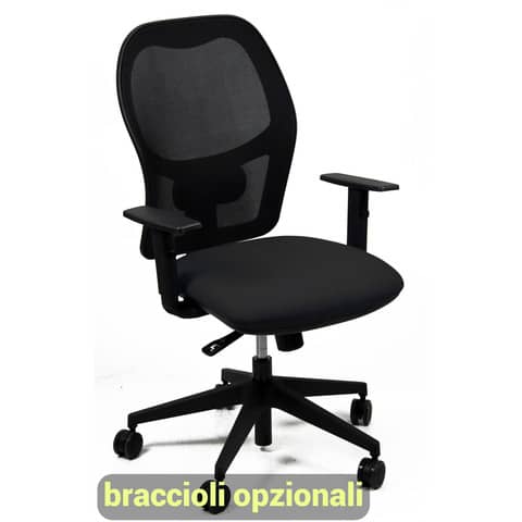 Sedia operativa girevole Unisit Hubble HUHU schienale in rete nero – rivestimento pelle nero – HUHU/PN