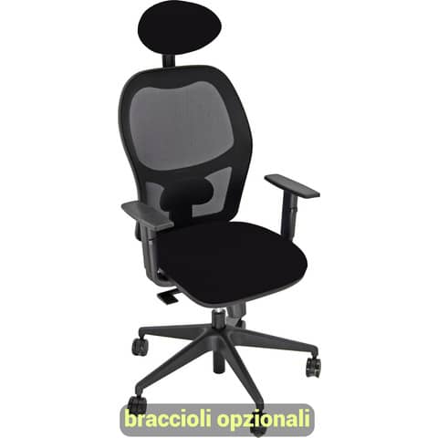 Sedia operativa girevole Unisit Hubble HUHUPG con poggiatesta schienale in rete riv. pelle nero HUHUPG/PN