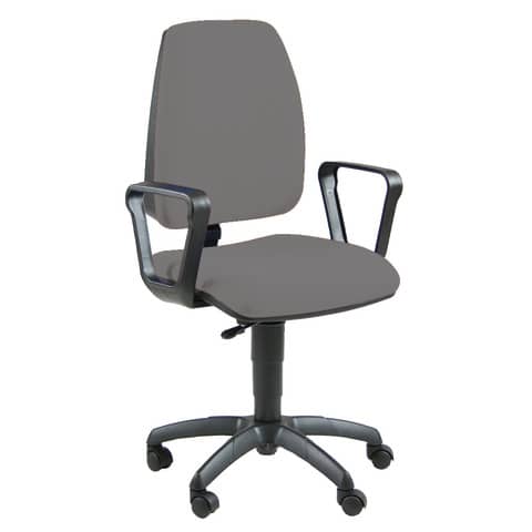 Struttura in acciaio nero, base in Nylon, guscio inferiore e dorsale in PPL nero. Rivestimento del sedile Eco, 100% Polipropilene 380g m/l, di colore grigio scuro. Con ruote, braccioli inclusi.