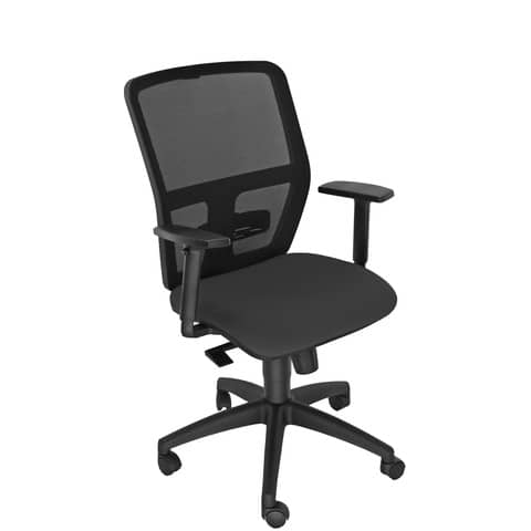Sedia operativa girevole Unisit Kemper KMA schienale in rete – rivestimento Eco nero – con braccioli – KMA/BRF/EN
