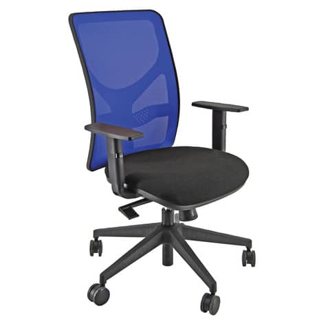 Sedia operativa girevole Pentagon Y10 PENA, ergonomica con supporto lombare regolabile. Base in nylon, struttura in acciaio. Schienale in nylon a rete blu, meccanismo a contatto permanente. Seduta con elevazione a gas, meccanismo Synchro con 4 blocchi antishock.