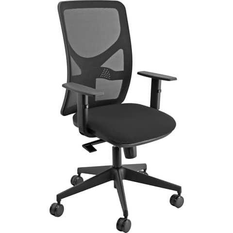 Sedia operativa girevole Pentagon Y10 PENA, ergonomica con supporto lombare regolabile. Base in nylon, struttura in acciaio. Schienale in nylon a rete nero, meccanismo a contatto permanente. Seduta con elevazione a gas, meccanismo Synchro con 4 blocchi antishock.