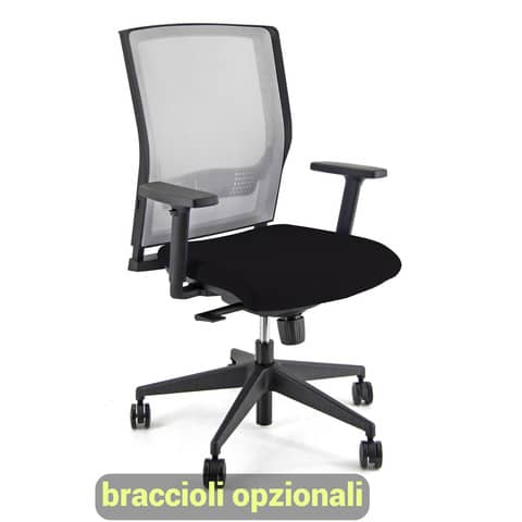 Sedia operativa girevole X Ray X2, schienale in rete grigio, seduta con elevazione a gas, meccanismo Synchro 4 blocchi anti shock, a contatto permanente, supporto lombare regolabile. Una sedia operativa dal design dinamico e grintoso per ambienti up to date.
