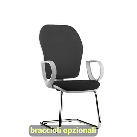 Sedia operativa interlocutore su slitta Hubble Grafix HUHUSGR ergonomica, schienale con supporto lombare regolabile. Hubble Grafix, con una livrea grigio chiaro per una seduta ?multi-purposè dotata di tutti gli accorgimenti per il miglior adattamento ergonomico.