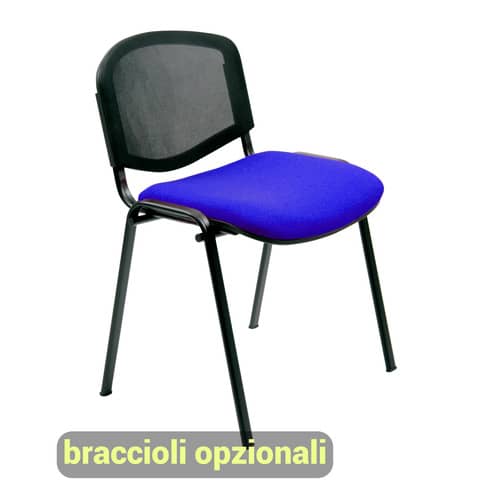 Misure: Altezza Totale 80 cm, Altezza Seduta 46 cm, Altezza Schienale 34 cm, Profondit? seduta 41 cm, Larghezza Seduta 53 cm, Larghezza Schienale: 48 cm, Braccioli opzionali, codici 110073, 110078. Schienale in rete.