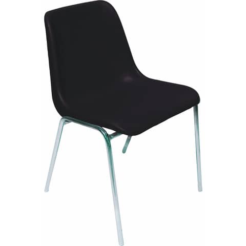 Sedia visitatore Esse ESC con struttura in acciaio cromato tubolare, schienale fisso. Struttura impilabile fino a 10 sedie. Monoscocca in polipropilene di colore nero. Classica seduta d?attesa adatta ad ogni impego.