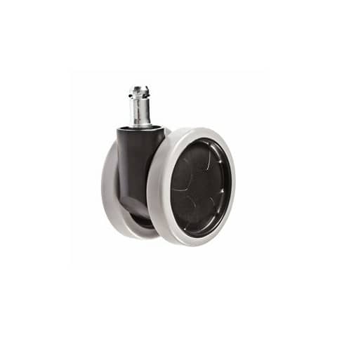 Set 5 ruote libere linea Work con base gommata ?65 mm. Adatte a parquet, non adatte a pavimenti duri. Ruote stampate ad innesto rapido, perno D11. Compatibili con tutte le sedute CKS. Colore nero. Prodotto 100% Made in Italy.