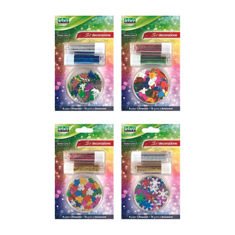 Set decorazioni Lebez Dekor Line 2 tubetti porporina + decorazioni glitter – 4 varianti assortite – 80541