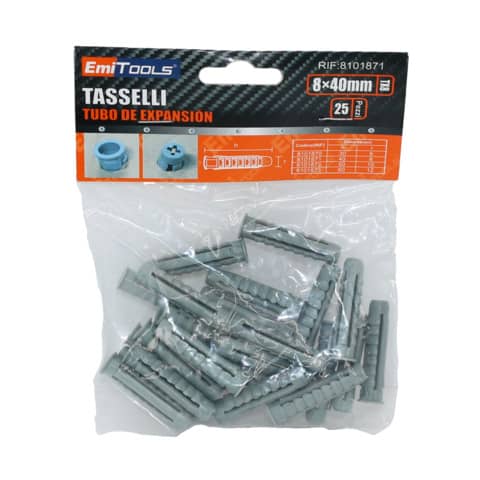 Tasselli in nylon per muro Emi 4 cm x – 8 mm – colore grigio – conf. da 25 pezzi – 8101871