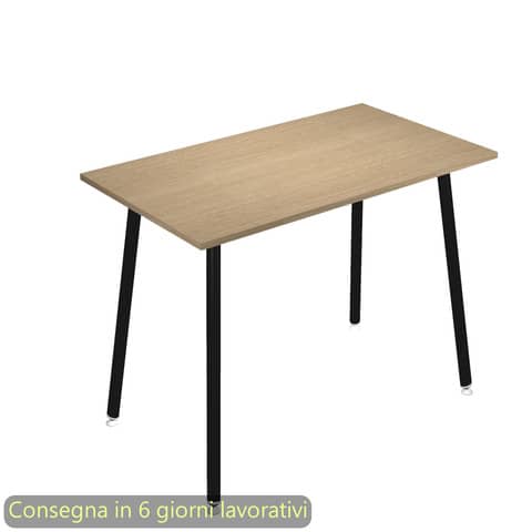 Tavolo alto della linea K67 Skinny Metal, una linea di arredo operativa dal design innovativo e dinamico, caratterizzata da gambe in metallo cilindriche inclinate. L’ideale per l?arredo di punti ristoro e per l?allestimento di postazioni di appoggio per veloci riunioni ed incontri di lavoro. Dimensioni L. 140 x P. 80 x H. 105 cm. Materiale bilaminato nobilitato melaminico spessore 22 mm conforme norme UNI e EN classe E1. Robusto piano in melaminico sp. 22 mm con bordo antishock resistente agli urti in ABS 2 mm, antigraffio e antiriflesso. Gambe in metallo verniciato nero (d. 50 mm) complete di piedini livellabili in altezza. Particolarmente stabile e robusto grazie alla struttura rafforzata da quattro travi in metallo di collegamento fra le gambe. Disponibile anche nella versione con le gambe in legno massello al codice … Certificazioni FSC e PEFC. Colore del piano rovere.