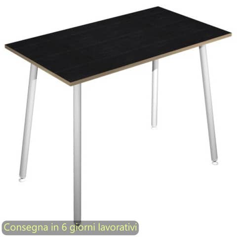 Tavolo alto della linea K67 Skinny Metal, una linea di arredo operativa dal design innovativo e dinamico, caratterizzata da gambe in metallo cilindriche inclinate. L’ideale per l?arredo di punti ristoro e per l?allestimento di postazioni di appoggio per veloci riunioni ed incontri di lavoro. Dimensioni L. 160 x P. 80 x H. 105 cm. Materiale bilaminato nobilitato melaminico spessore 22 mm conforme alle norme UNI e EN classe E1. Robusto piano in melaminico sp. 22 mm con bordo antishock resistente agli urti in ABS 2 mm, antigraffio e antiriflesso. Gambe in metallo verniciato bianco (d. 50 mm) complete di piedini livellabili in altezza. Particolarmente stabile e robusto grazie alla struttura rafforzata da quattro travi in metallo di collegamento fra le gambe. Disponibile anche nella versione con le gambe in legno massello. Certificazioni FSC e PEFC. Colore del piano nero venato frassino con bordo rovere.