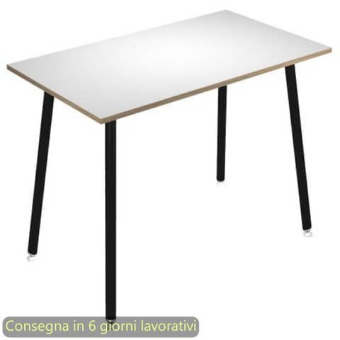 Tavolo alto della linea K67 Skinny Metal, una linea di arredo operativa dal design innovativo e dinamico, caratterizzata da gambe in metallo cilindriche inclinate. L’ideale per l?arredo di punti ristoro e per l?allestimento di postazioni di appoggio per veloci riunioni ed incontri di lavoro. Dimensioni L. 160 x P. 80 x H. 105 cm. Materiale bilaminato nobilitato melaminico spessore 22 mm conforme alle norme UNI e EN classe E1. Robusto piano in melaminico sp. 22 mm con bordo antishock resistente agli urti in ABS 2 mm, antigraffio e antiriflesso. Gambe in metallo verniciato nero (d. 50 mm) complete di piedini livellabili in altezza. Particolarmente stabile e robusto grazie alla struttura rafforzata da quattro travi in metallo di collegamento fra le gambe. Disponibile anche nella versione con le gambe in legno massello. Certificazioni FSC e PEFC. Colore del piano bianco con bordo rovere.