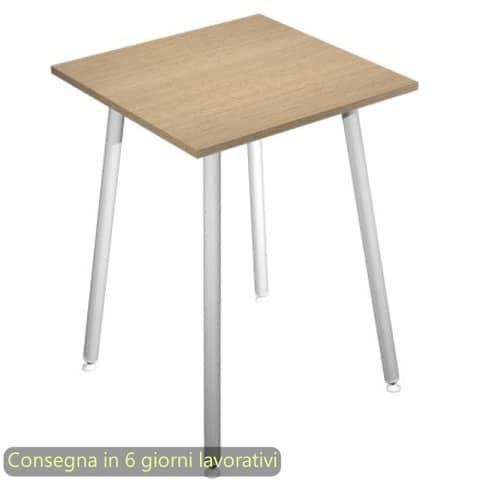Tavolo alto della linea K67 Skinny Metal, una linea di arredo operativa dal design innovativo e dinamico, caratterizzata da gambe in metallo cilindriche inclinate. L’ideale per l?arredo di punti ristoro e per l?allestimento di postazioni di appoggio per veloci riunioni ed incontri di lavoro. Dimensioni L. 80 x P. 80 x H. 105 cm. Materiale bilaminato nobilitato melaminico spessore 22 mm conforme alle norme UNI e EN classe E1. Robusto piano in melaminico sp. 22 mm con bordo antishock resistente agli urti in ABS 2 mm, antigraffio e antiriflesso. Gambe in metallo verniciato bianco (d. 50 mm) complete di piedini livellabili in altezza. Particolarmente stabile e robusto grazie alla struttura rafforzata da quattro travi in metallo di collegamento fra le gambe. Disponibile anche nella versione con le gambe in legno massello. Certificazioni FSC e PEFC. Colore del piano rovere.