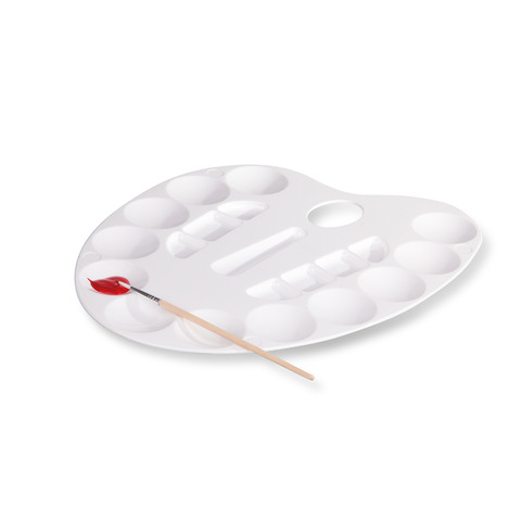 Tavolozza grande dalla forma ovale per miscelare tempere e colori, ideale sia per principianti che per soggetti da una preparazione avanzata. Realizzata in materiale plastico permette di miscelare colori di ogni tipo, utilizzando sia le parti piatte che quelle preformate a vaschetta. Particolarmente utile per la diluizione delle tinte. Lavare dopo l?uso con acqua e sapone, evitando le spugne abrasive per conservare la superfice sempre lucida. 12 scomparti.