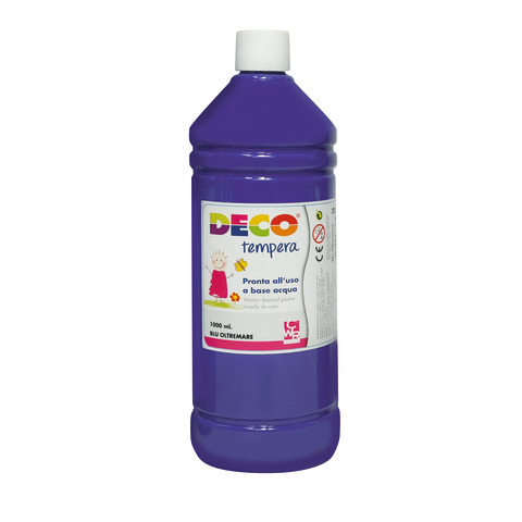 Tempera in flacone a base d?acqua. Disponibile in colori brillanti e facilmente miscelabili tra loro. La tempera – atossica e permette di ottenere un?ampia gamma di tonalità . ?, anche, pronta all?uso e lavabile. Ideale per dipingere in totale libertà . Formato: 1000 ml. Colore: blu oltremare.