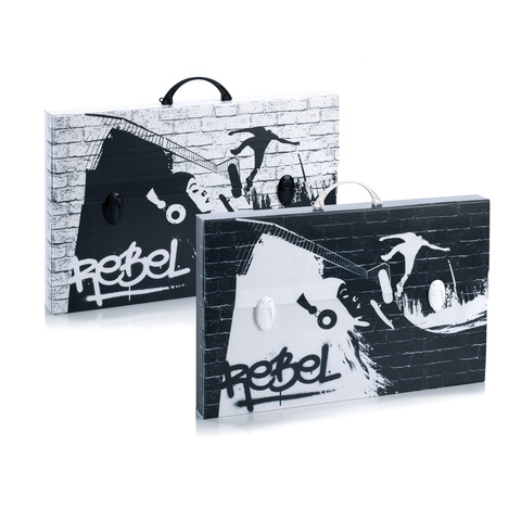 Valigetta in polipropilene alveolare a due chiusure con stampa in alta risoluzione Black & White. Formato: 56,5 x 36,5 cm. Dorso: 5 cm. Ideale per blocchi 24?33 cm e 33?48 cm. Pu? contenere anche una riga da 60 cm. Completa di film protettivo.