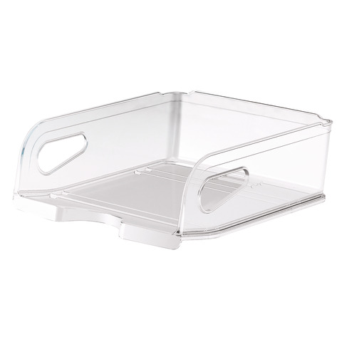 Vaschetta portacorrispondenza Maxi con doppia altezza per alloggiare corrispondenza, cartelle o piccoli pacchi. Impugnature laterali. Per fogli formato A4 fino a 25,5 x 32 cm. Sovrapponibile verticalmente o a scalare. Ampia apertura frontale che facilita l’accesso ai documenti anche quando sono impilati. Colore cristallo.