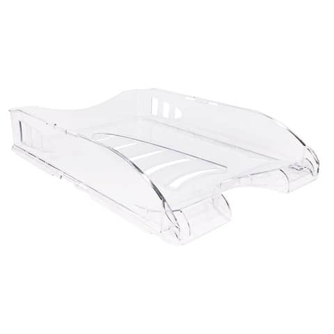 Vaschetta portacorrispondenza impilabile in modo diritto o a scalare. La presa centrale facilita l’accesso ai documenti, e la sede per due etichette aggiunge praticit? all’organizzazione della corrispondenza. Colore trasparente. Dimensioni 335 x 260 H. 67 mm.